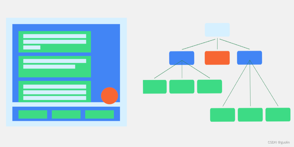 在上图当中,左边是我们看到的Compose渲染出来界面效果,而右边则是它内部的存储结构示意图。