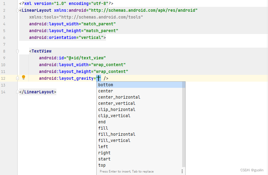 但是很遗憾,由于xml并不能理解当前代码所处的作用域,所以它提供给我们的对齐方式候选项里会有许多不可使用的选项。