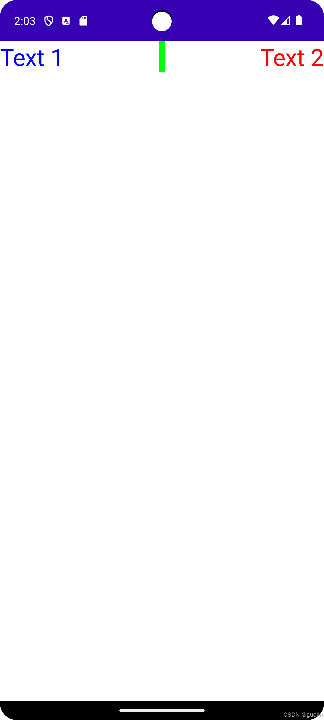 假设我们要实现一个非常简单的布局,左右各放置两个Text控件,中间使用一条竖线分割。这代码要怎么写呢?下面是一种写法示例: