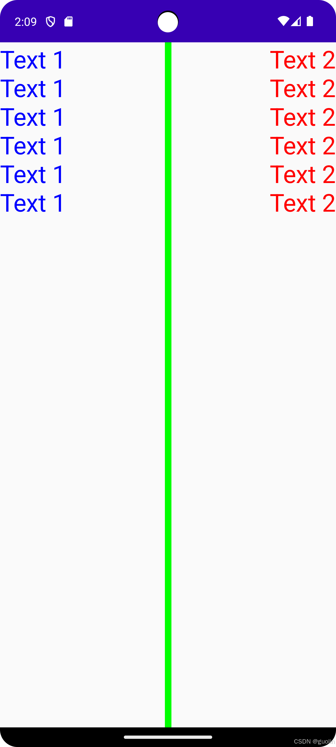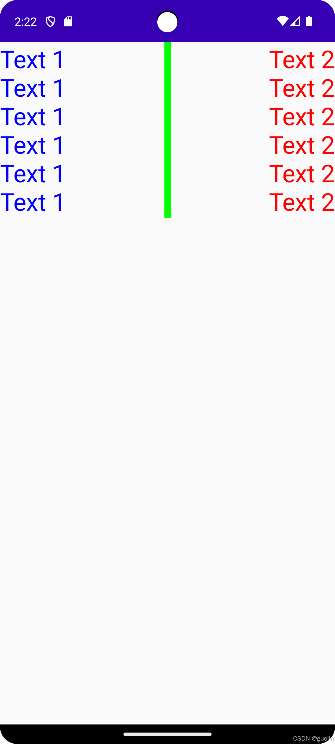 效果已经出来了,但是不知道大家有没有发现一个问题,这里Divider分隔线的高度是固定值40dp。这也就意味着,如果Text的高度发生了变化,分隔线的高度是不会跟着变的。
